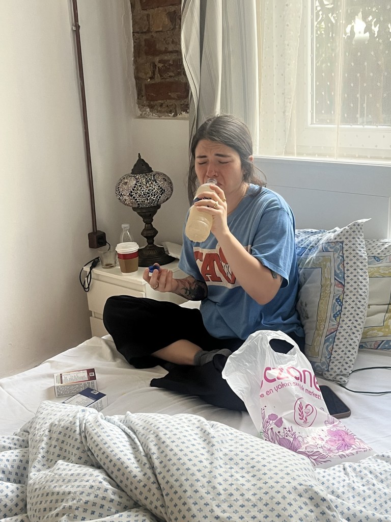 When Ally arrived that night, she was sick. There had been several people at her event that were sick and she apparently had caught what they had. One of the first things on our agenda the following day was to find some medicine for Ally so that she could feel well enough to explore. We went to a pharmacy. The lady who helped us asked Ally about her symptoms and then handed her two different types of medicine. She gave the dosage instructions. We didn’t have any idea what the medicines were, since the writing on the package was in Turkish. We were a little unsure about Ally taking the medicine, but the lady in the pharmacy was nice. Being nice is certainly a factor in deciding whether or not to ingest an unknown substance, right?