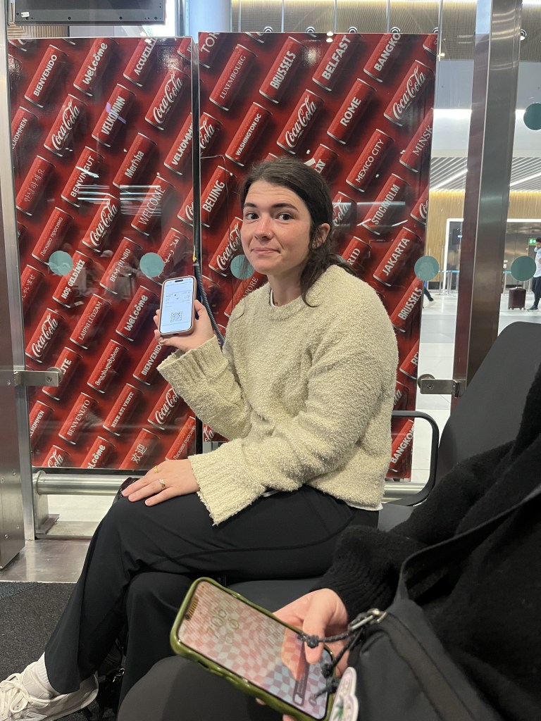 Early the next morning, we left for the airport. Ally had trouble with her plane ticket, and the British Airways app wasn’t working, as usual. We had to stand in line for a very long time, waiting for the British Airway people to come to the counter to start working. Apparently, a lot of people had trouble with their tickets and the app, because several people were in the line. Ally was not happy, and she finally insisted that Sarah and I go to the gate and wait for her there. Early morning, people talking, and frustration-not a good combination for Ally’s mood. I didn’t want to leave her standing there, but the look on her face convinced me that I should go. I waited anxiously at the gate. She finally got through the line and got the issue resolved, and she made it to the gate on time. Whew. We boarded our flight and made it home safely. Another great trip!