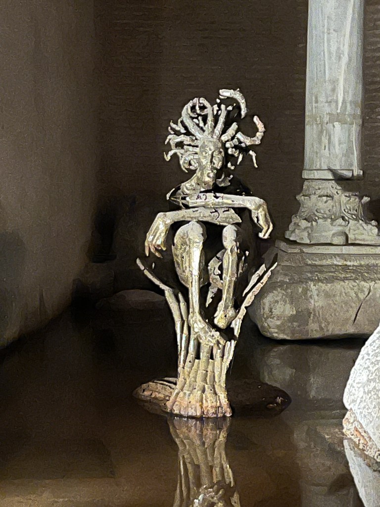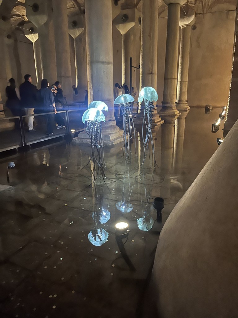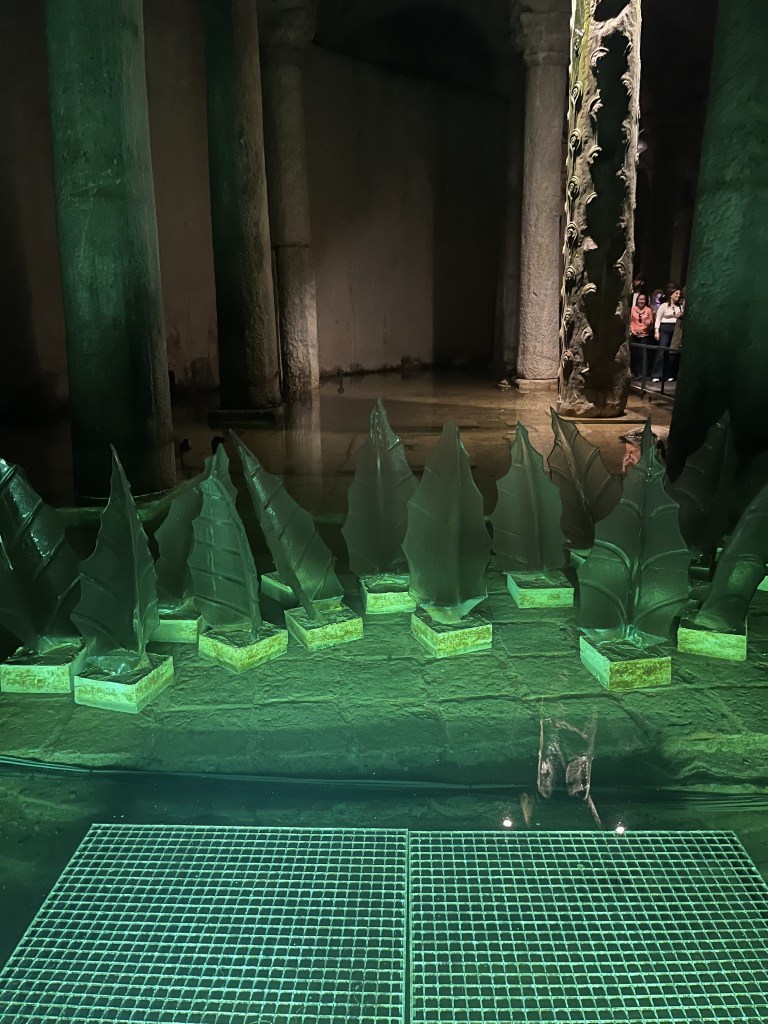 Our third stop that day was Basilica Cistern. The Basilica Cistern is also called the Sunken Palace. It is estimated that over 7000 slaves worked to build the cistern. It was constructed to store and supply fresh water to Constantinople (Istanbul). It can store up to 80,000 cubic meters of water. There are various statues and lighted areas that make walking through the cistern a little eerie.