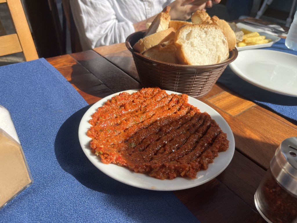 This red blob, that looks like raw ground beef, was actually a tomato dip thing. It sounded good on the menu, but it was NOT. Ick. Not a great day to try to be a more adventurous eater.
