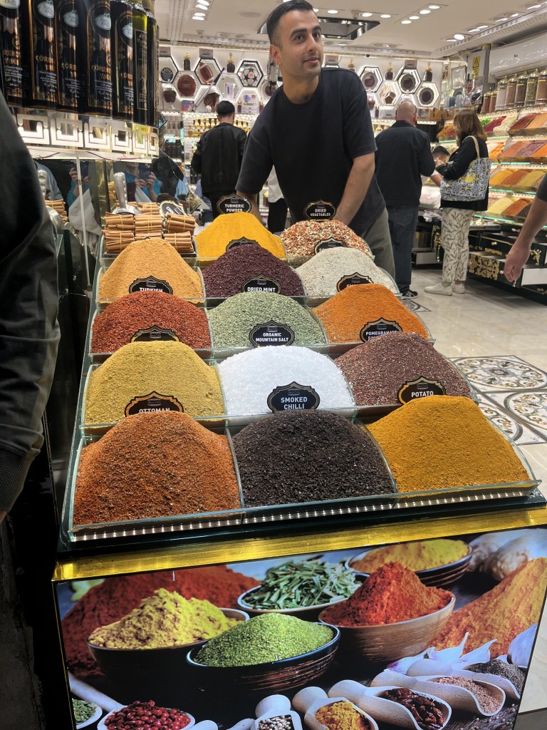 Our last stop before heading back to our apartment was the Grand Bazaar. This is one of the largest and oldest covered markets in the world. It has 61 covered streets and over 4000 shops. For someone who doesn’t even like to shop, this market was a little overwhelming. It was very crowded, and the people from the shops were yelling and trying to get people’s attention to draw them into the shops. If we showed the slightest interest, they started to very actively try to get us to buy something.