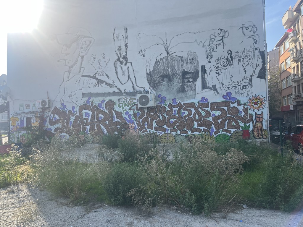 Ally had heard about the murals in Kadikoy, but other than that, we didn’t really have a particular direction to go. We kind of wandered around the area, looking for murals, and looking for a place to eat. Remember, we had not had breakfast. The agenda.
