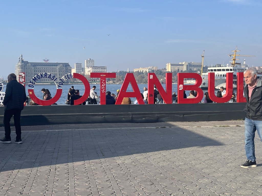We spent some time walking near the water, sitting on the benches, people watching, and taking pictures of the big Istanbul sign.
