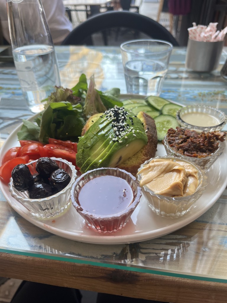 We ate brunch at a restaurant before we headed to the next place on Ally’s list. I actually remembered to take a picture of my food a few times on this trip. This is what I had for brunch that day. I was able to identify almost everything. I wasn’t sure about the bowl of brown things, but after some encouragement from the girls and a very cautious nibble, I decided they might be dates.