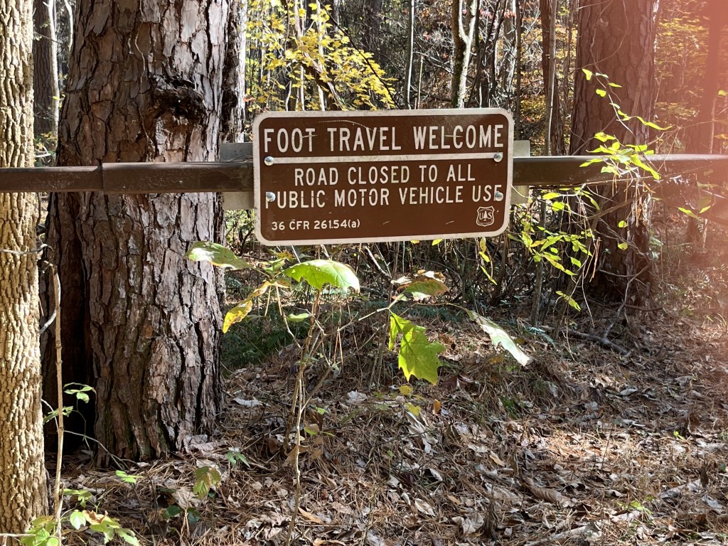 For the record, this sign means you can hike on the trail. This is NOT the sign that was on the gate at the beginning of the this trail.